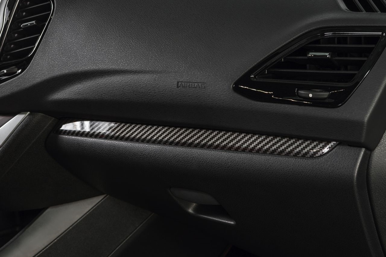 - Комбинированная отделка сидений из кожи с тиснением под карбон и алькантары.
