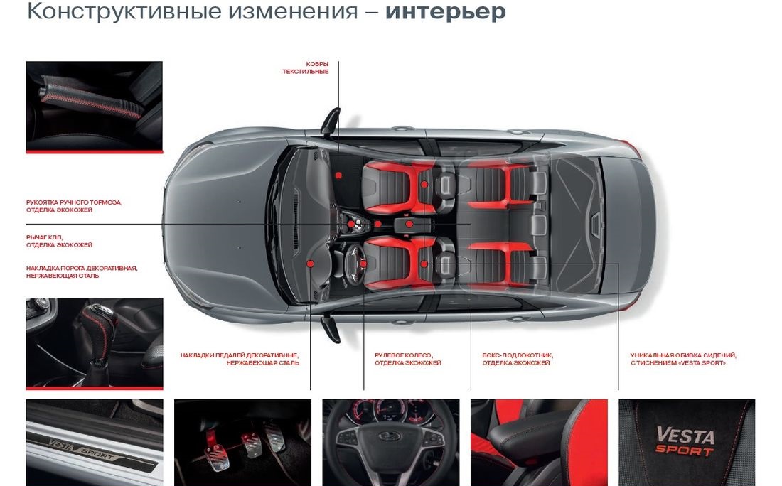Всего в Lada Vesta Sport относительно стандартного седана применено 205 оригинальных деталей и узлов.