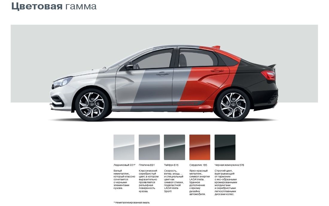 - Фирменный цвет кузова «Тайфун» (серо-стальную эмаль), им будут окрашиваться только спортивные седаны (другие цвета из палитры стандартной версии тоже будут доступны).