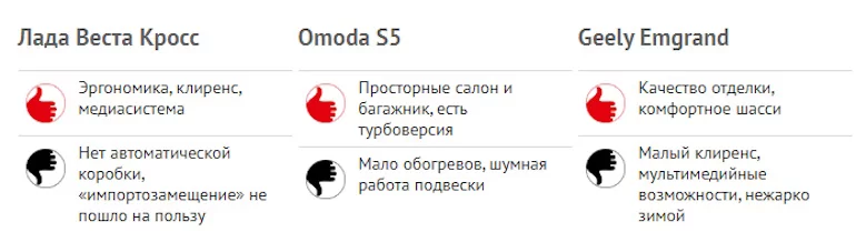 Журнал «За рулем» провел сравнительный обзор и тест-драйв Geely Emgrand, Omoda S5 и Lada Vesta. По большому счету, все три седана – новинки. Оба «китайца» – самые доступные модели в линейке своих брендов. По экспертной оценке Lada Vesta NG немного не дотягивает до китайских конкурентов.