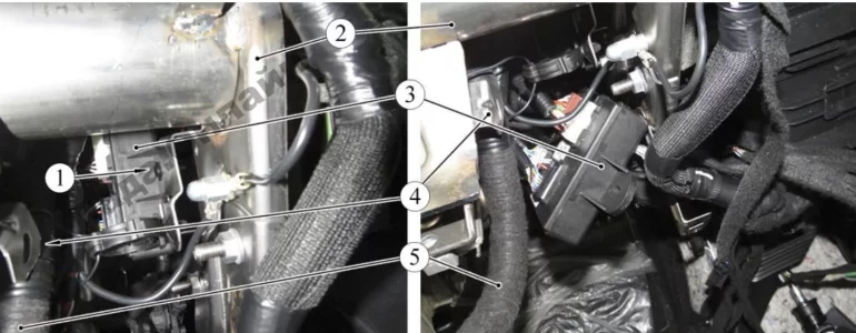 Блок EMM установлен с левой стороны от отопителя на стойке поперечины панели приборов.