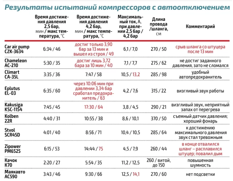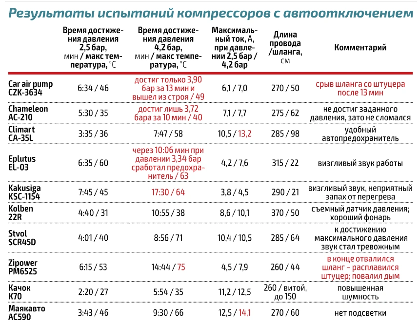 Лучшим из проверенных компрессоров стал «свадебный генерал» – дорогостоящий Качок К70. Из бюджетных одобрение получили Climart CA‑35L, Kolben 22R, а также, с оговорками, Stvol SCR45D и Маяк-авто АС590. Итого – меньше половины.