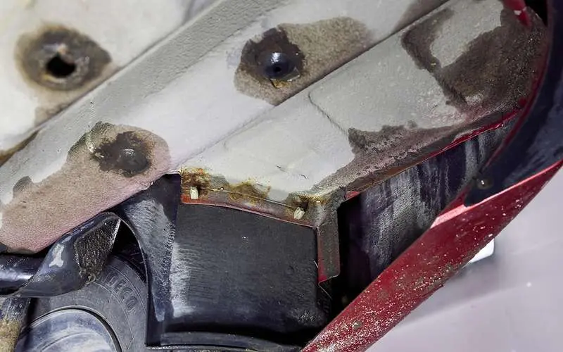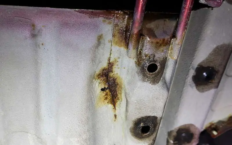 Устойчивость к ржавчине. Металл на днище не тронут коррозией даже в местах, не покрытых заводской мастикой. Но на большинстве кромок ржавчина проступила из-под защитного состава. Чем дальше к задней части кузова, тем коррозии больше. Для 9‑летней Лады результат неплохой. При обслуживании радиаторов заметили ржавчину и на торцах лонжеронов.
