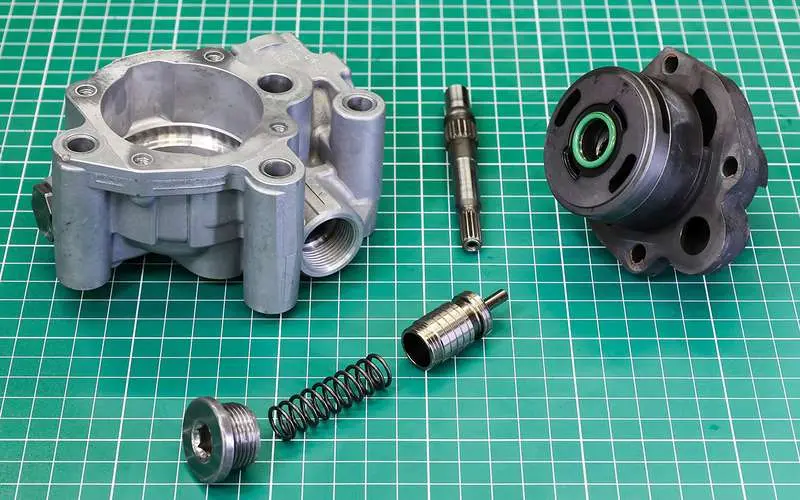 Масляный насос может выйти из строя после 100–120 тысяч км. Причиной может быть редукционный клапан (подпружиненный поршень), который быстро изнашивается из-за продуктов износа в смазке, что приводит к некорректному давлению масла. Во время ремонта вместо него ставят из чугуна усиленный отечественный клапан.