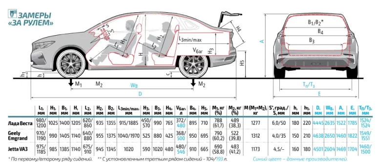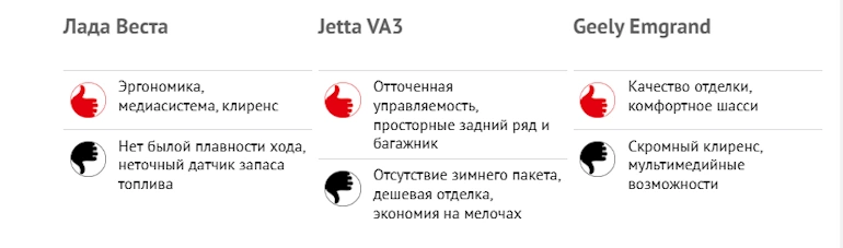 | Лада Веста | Geely Emgrand | Jetta VA3 | |
