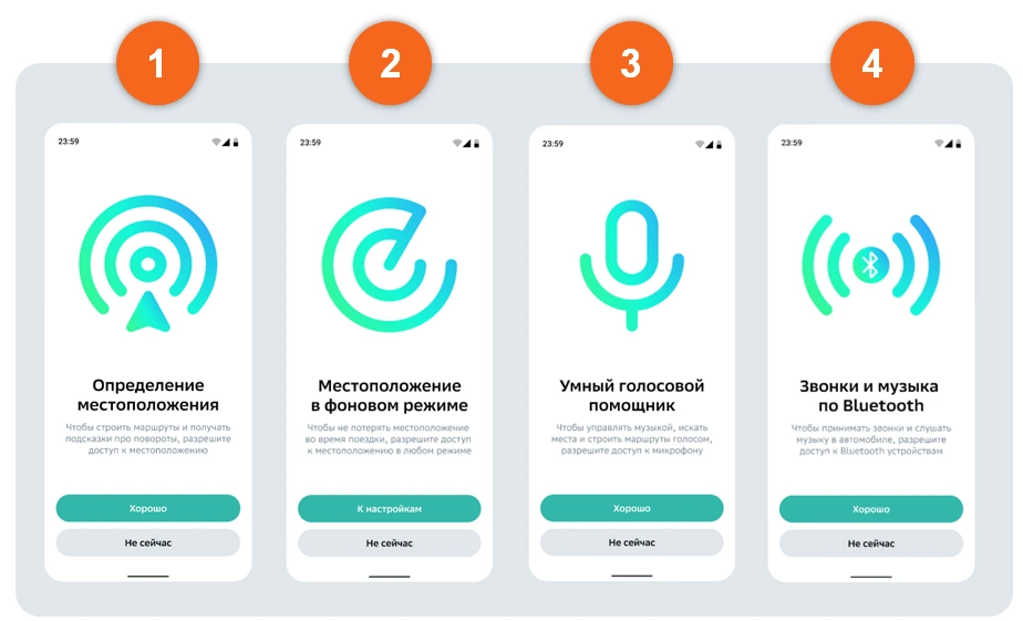 После сканирования QR-кода и скачивания приложения на телефон необходимо разрешить доступы к следующим функциям:
