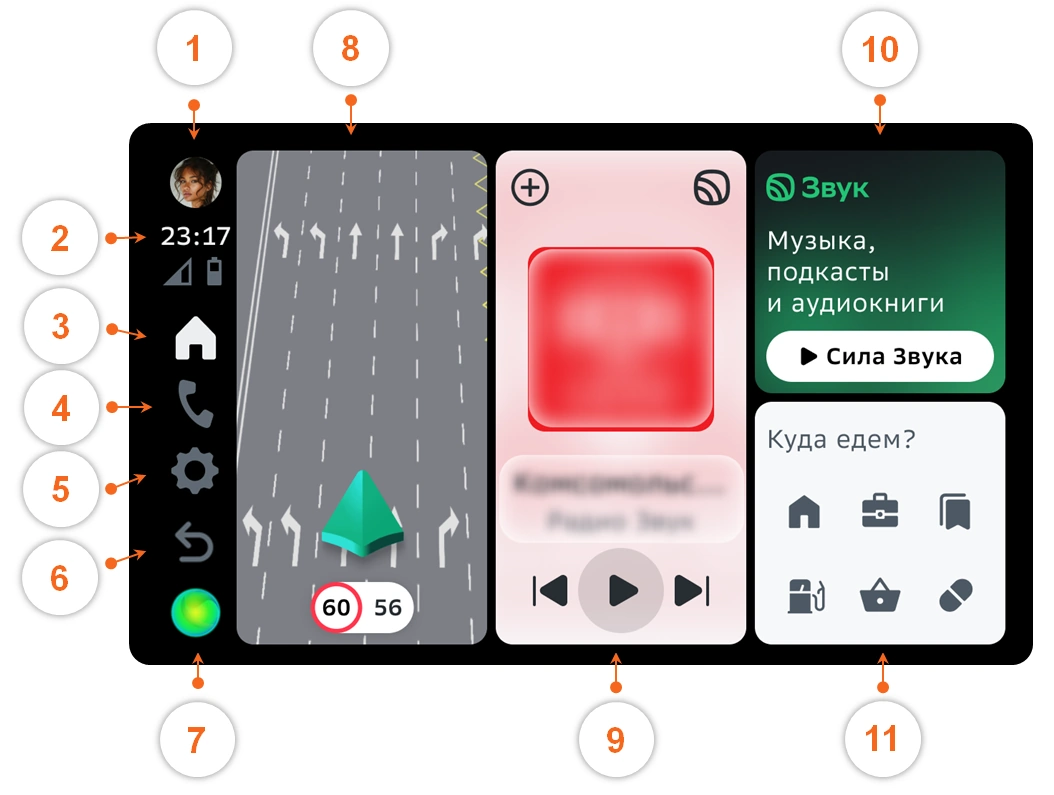 Работа с локацией, воспроизведение медиа и подсказок навигатора, голосовая активация и обработка аудио с микрофона, а также формирование пользовательского интерфейса и все вычисления производятся на стороне смартфона.