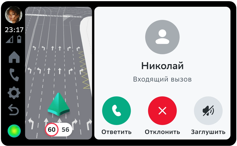 Телефон передает информацию на дисплей авто, и вы получаете доступ к необходимым функциям во время поездки
