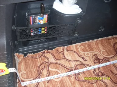 Укладываем на опоры и прикручиваем 2 штатными болтами. Вырезанный на глазок коврик, стелим на почти ровный пол. Под коврик в зависимости от длины пассажира можно положить остатки от МДФ панелей.