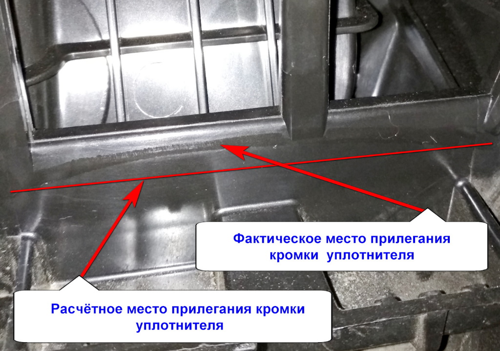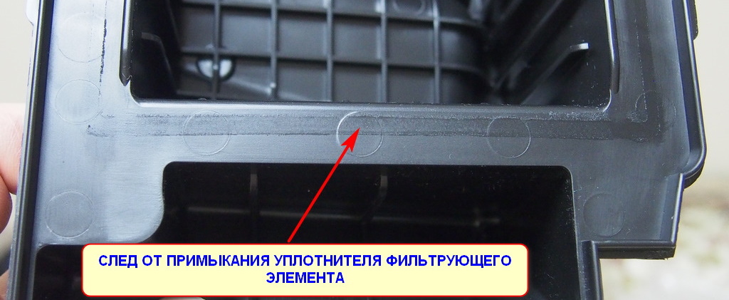 Свои догадки высказал пользователь gagarinec. Он предполагает, что корпус старого образца не позволяет фильтру плотно встать на свое место, из-за чего появляется подсос воздуха, который можно определить по темному следу на уплотнителе фильтра: