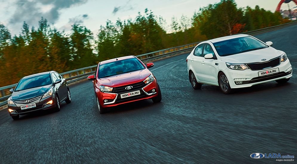 Новинка АВТОВАЗа еще не поступила в продажу, но автожурналы уже радуют читателей первыми сравнительными обзорами и испытаниями. В этот раз подробный отчет подготовит портал Колеса.ру, в котором сравнивали Лада Веста и корейские автомобили аналогичного класса (Kia Rio и Hyundai Solaris).