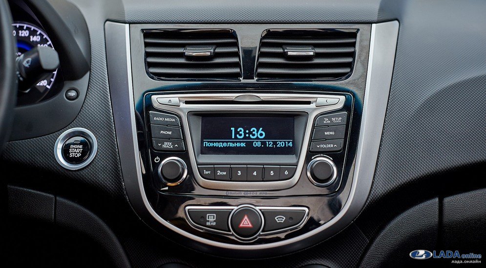 Мультимедийная система (ММС). Магнитолы у Kia Rio и Hyundai Solaris одинаковы, разница только в подсветке. В первом случае она красная, а у Hyundai – ядовито-синяя. Функционал ММС всех трех автомобилей похож, есть Bluetooth и разъем USB. У Весты есть слот для SD-карт, у соперников – нет.