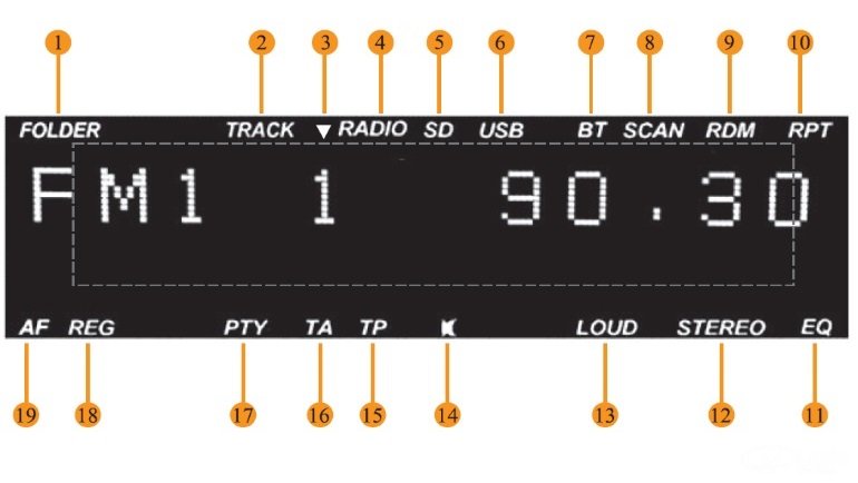 15 – индикатор режима отображения станций по жанрам или принятия текстовой информации, передаваемой радио-станциями FM;