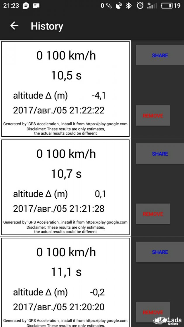 5. Результаты замера 0-100 на 1.8 на роботе в режимах А И М