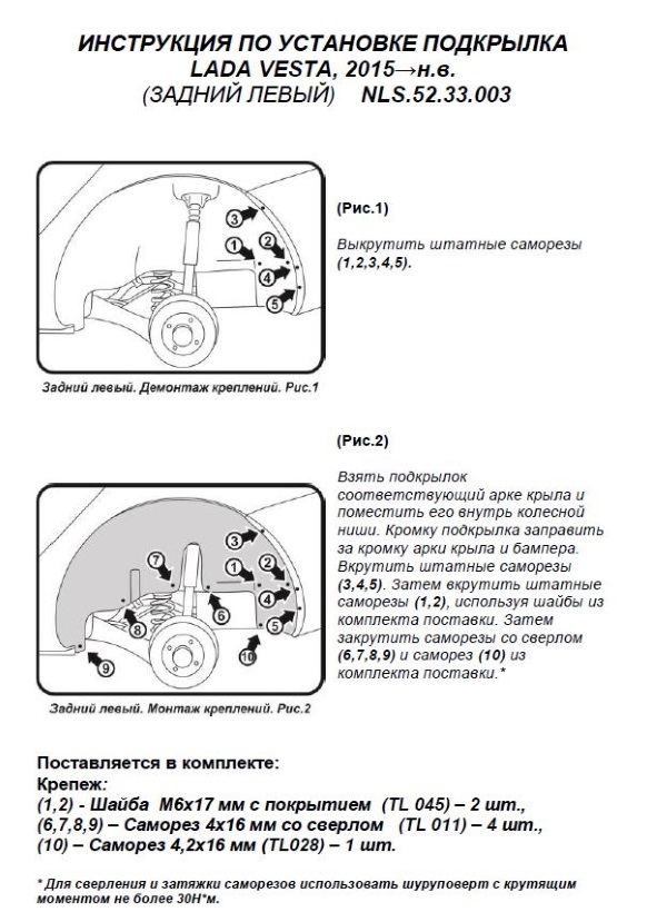 Будет ли от подкрылков польза или вред зависит не только от конструкции детали, но и от способа ее установки. Удачным решением будет выбрать локеры для Лада Веста без саморезов, которые будут держаться только на штатных креплениях кузова. Если для установки подкрылков все таки пришлось сделать дополнительные отверстия, то не забудьте в этом месте обработать кузов антикором.