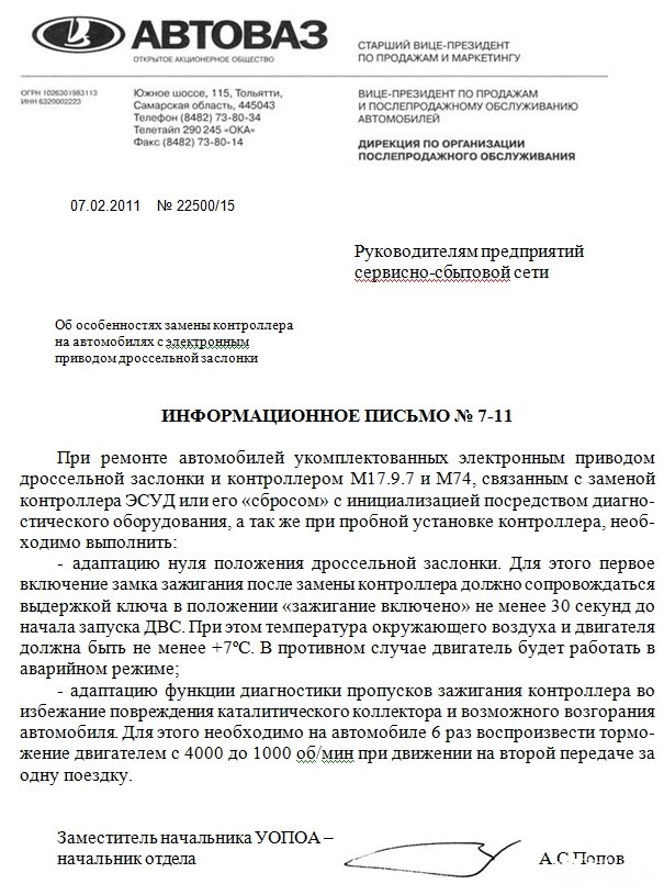 Про электронную педаль газа автомобилей Лада