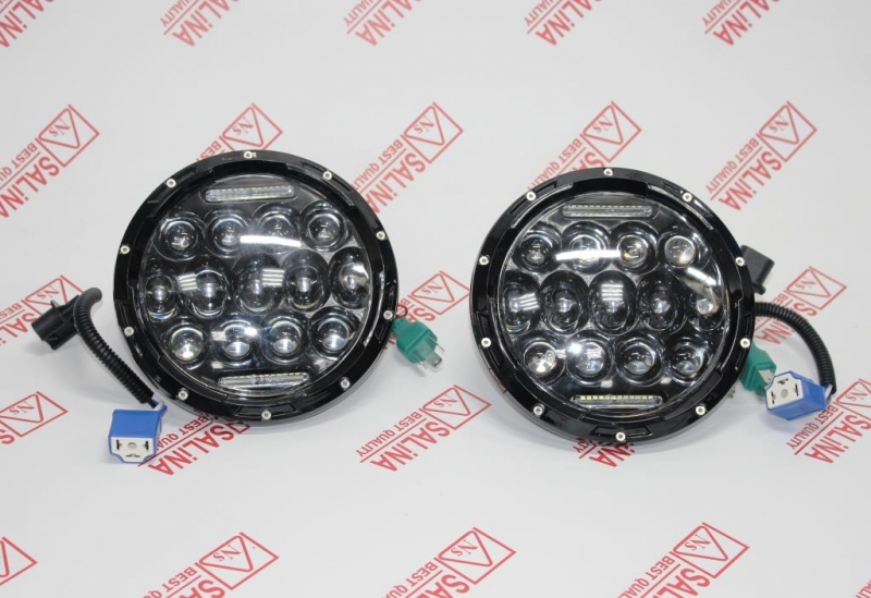 Универсальные светодиодные фары 7" мощностью 80W подходят на Лада Нива, УАЗ, Jeep Wrangler и другие модели автомобилей, в которых используются 7 дюймовые фары.