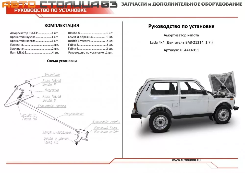 В комплекте 1 амортизатор, набор крепежа и инструкция по установке.