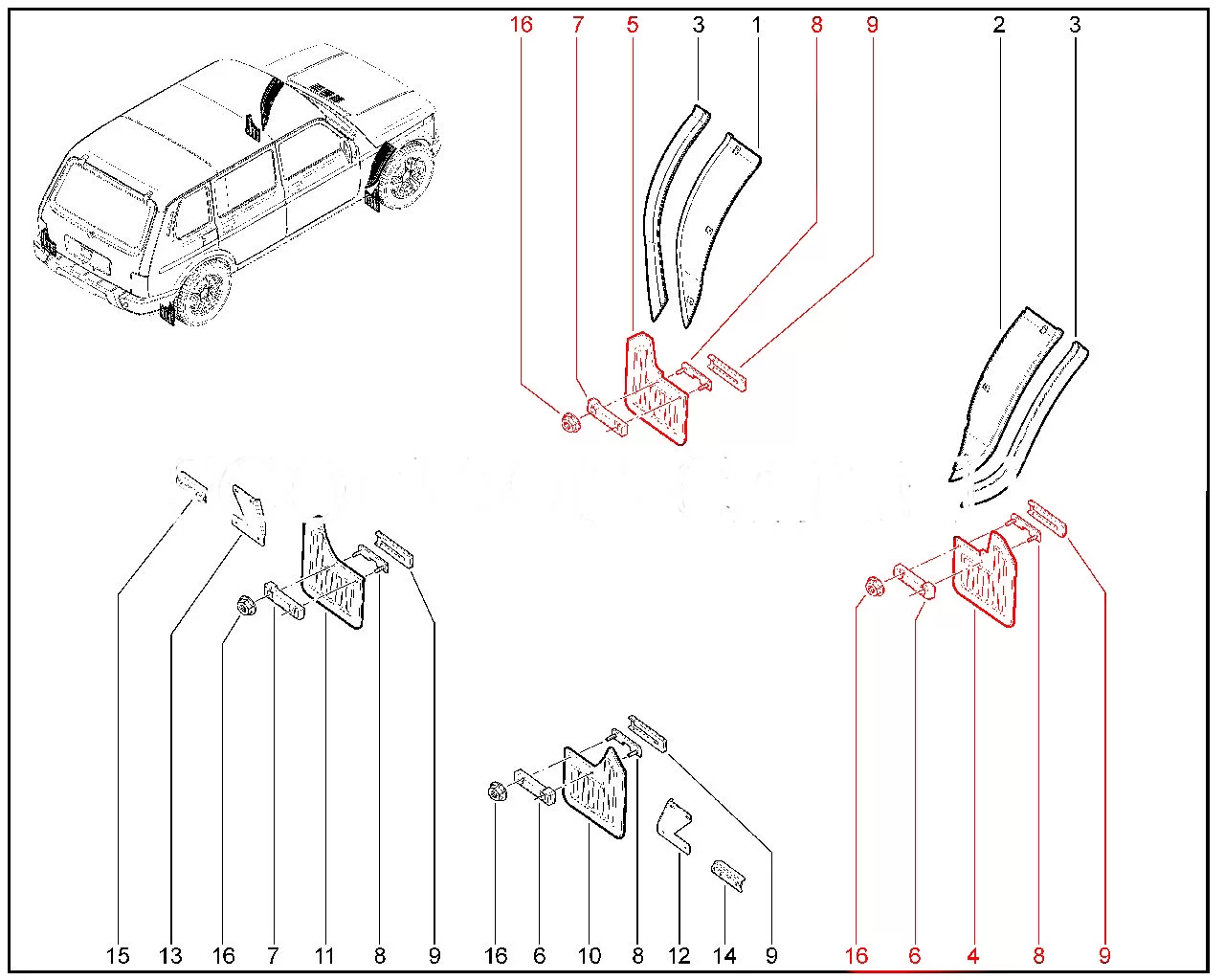 Штатные брызговики передних колес для Лада Нива 4х4.