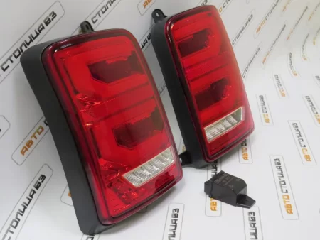 Тюнинговые светодиодные фонари красного цвета в стиле Range Rover. Фонари полностью диодные, имеют динамический (бегущий поворотник).