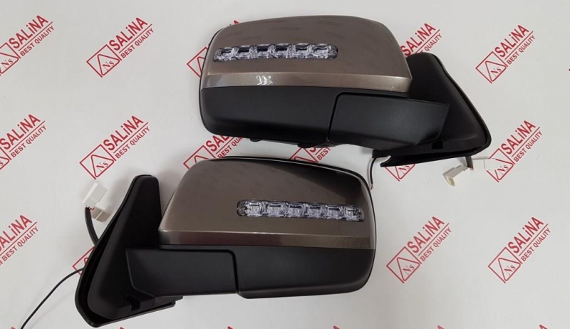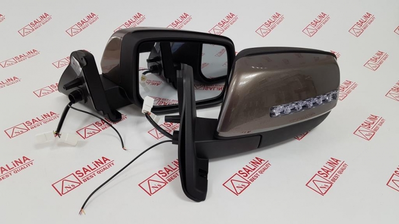 Комплект зеркал ВАЗ 21214 нового образца с бегущим повторителем в стиле Лексус (LEXUS) и дневными ходовыми огнями ДХО.