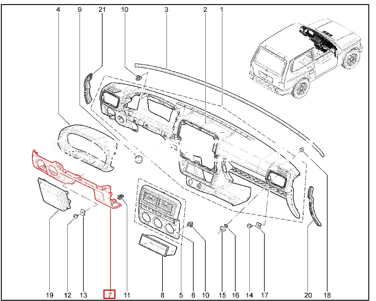 Облицовка панели приборов для Лада Нива 4х4 с 06.2019 года.