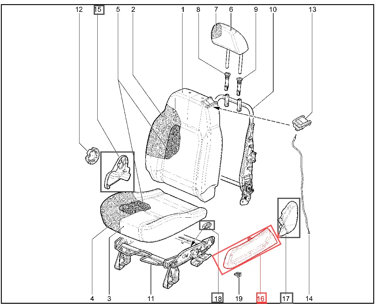 Штатная оригинальная облицовка переднего сиденья наружная левая (3 скобы 21217-6814126) для Лада Нива Легенда с 06.2019 года.