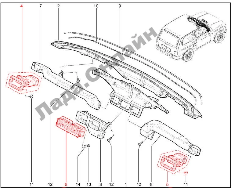 Сопло вентиляции кузова нового образца для Лада Нива, 4х4.