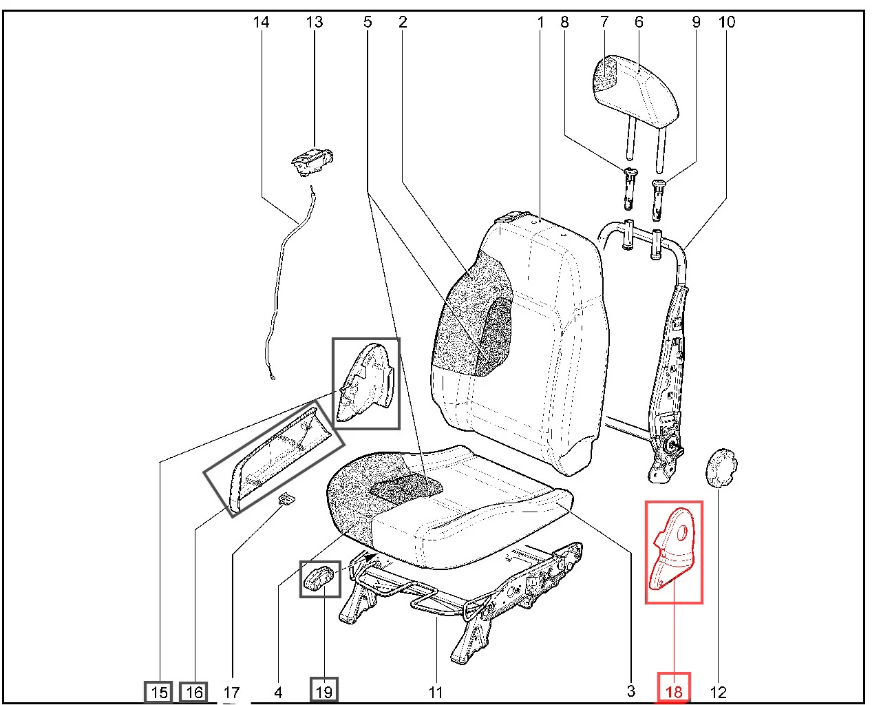 Штатная оригинальная облицовка переднего сиденья внутренняя левая (1 скоба 21217-6814126) для Lada Niva Legend, 4x4, Urban с 2019 года.