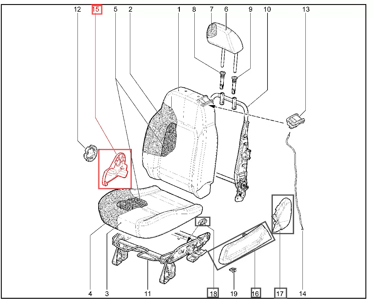 Штатная оригинальная облицовка переднего сиденья внутренняя правая (1 скоба 21217-6814126) для Лада Нива Легенда с 2019 года.