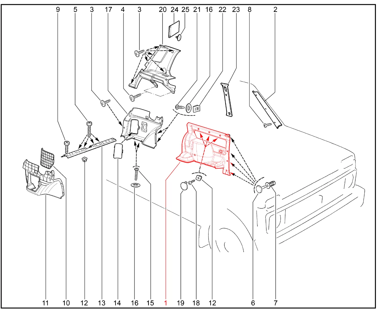 Штатная оригинальная обивка боковины средняя в сборе для Lada Niva Sport.