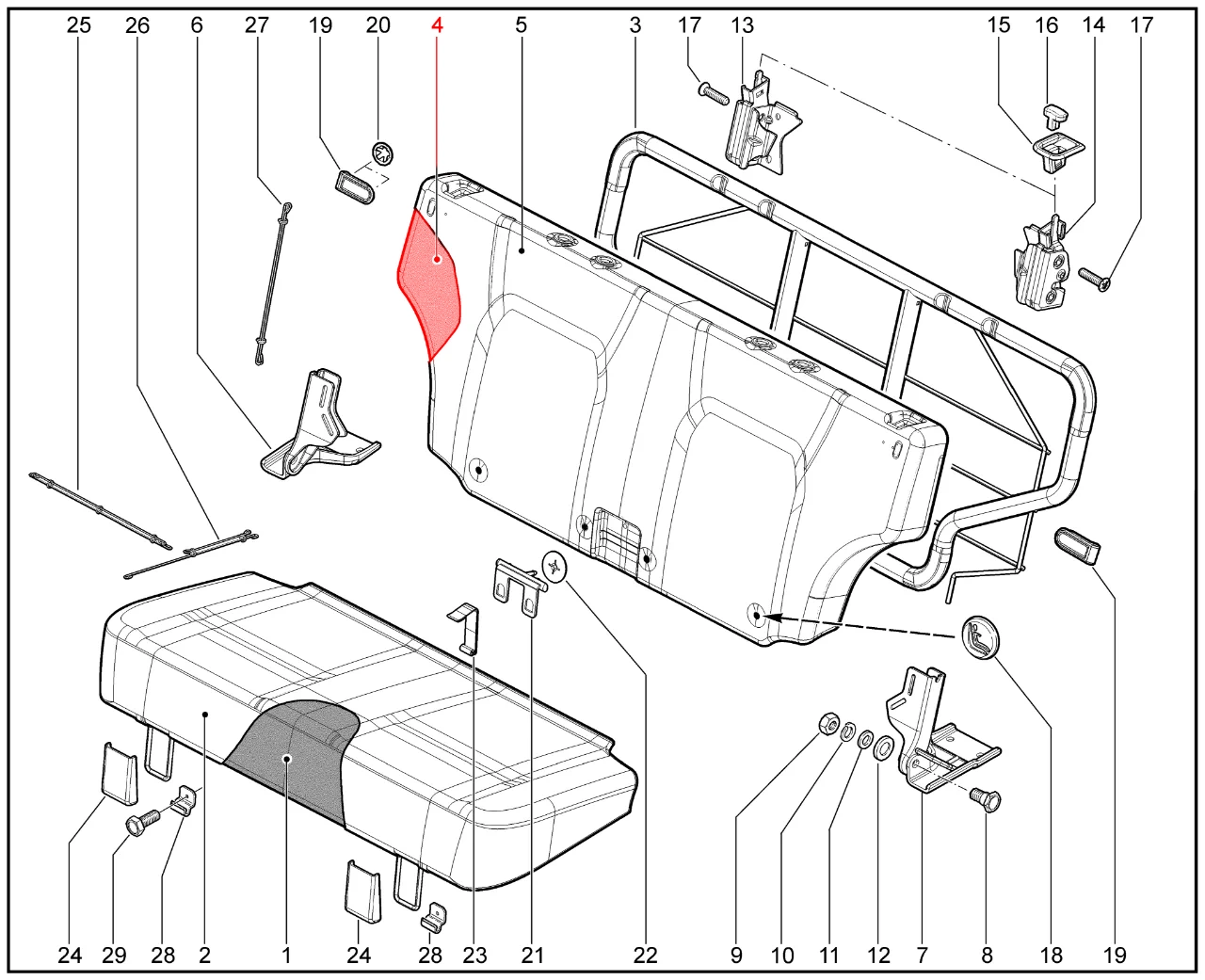 Штатная оригинальная набивка спинки заднего сиденья для Lada Niva Legend, 4x4, Urban.