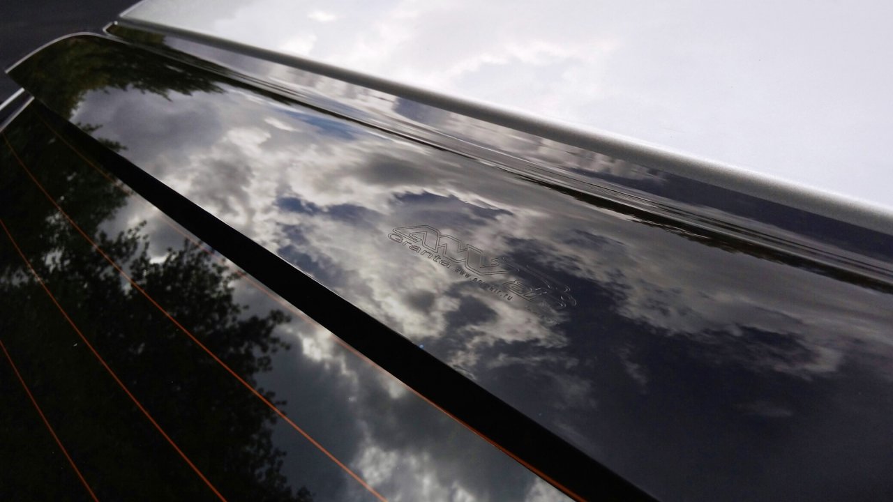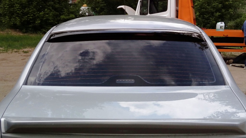 Дефлектор (козырек, спойлер) на заднее стекло для Лада Гранта в кузове Седан. Цвет темно-коричневый, слегка прозрачный.
