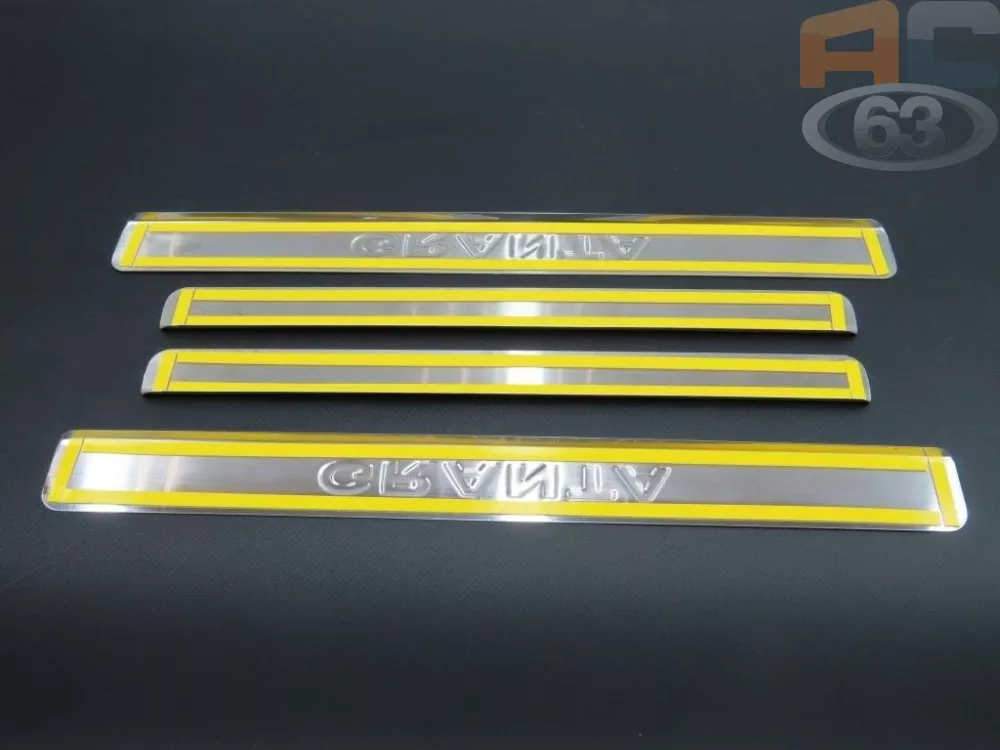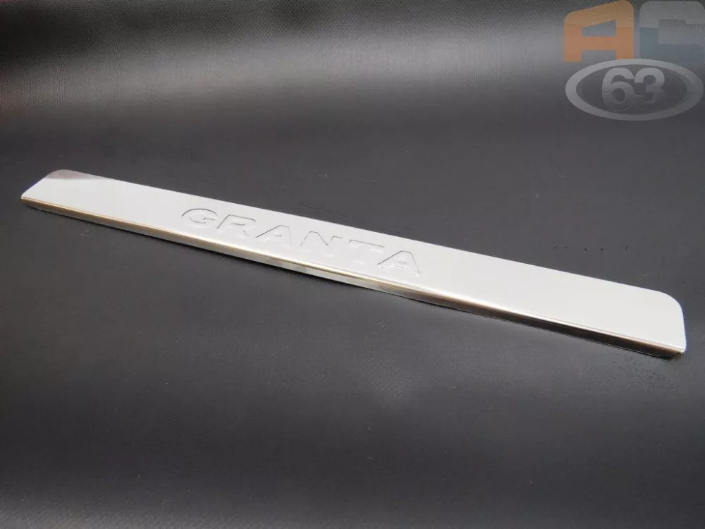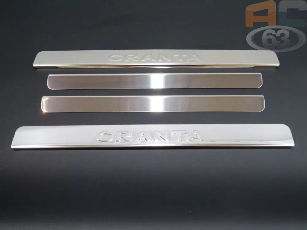 Накладки на пороги Лада Гранта 2190 с тиснением "GRANTA", комплект 4 шт, полированная нержавеющая сталь.