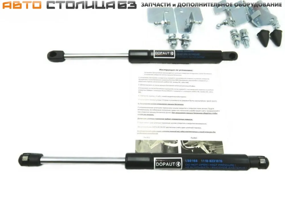 Комплект усиленных упоров крышки багажника для автомобилей Лада Гранта (седан, в том числе FL) и Datsun on-DO. Установка производится в штатные места без сверления дополнительных отверстий. Упоры облегчают подъем крышки багажника и повышают удобство эксплуатации.