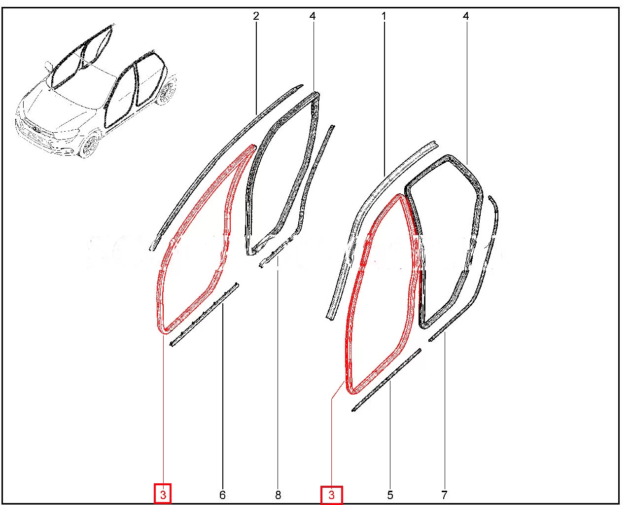 Уплотнитель проема передней двери для Лада Гранта и Калина.