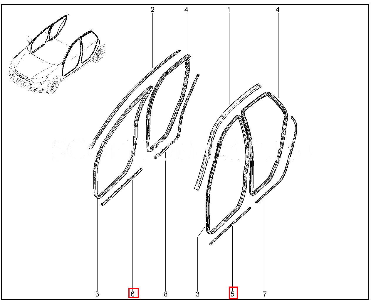 Уплотнитель порога передней двери в сборе для Лада Гранта и Калина.