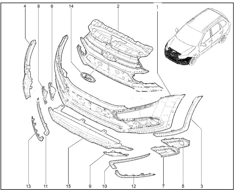 Бампер передний для Лада Гранта Кросс. Цена за деталь №1 на схеме.