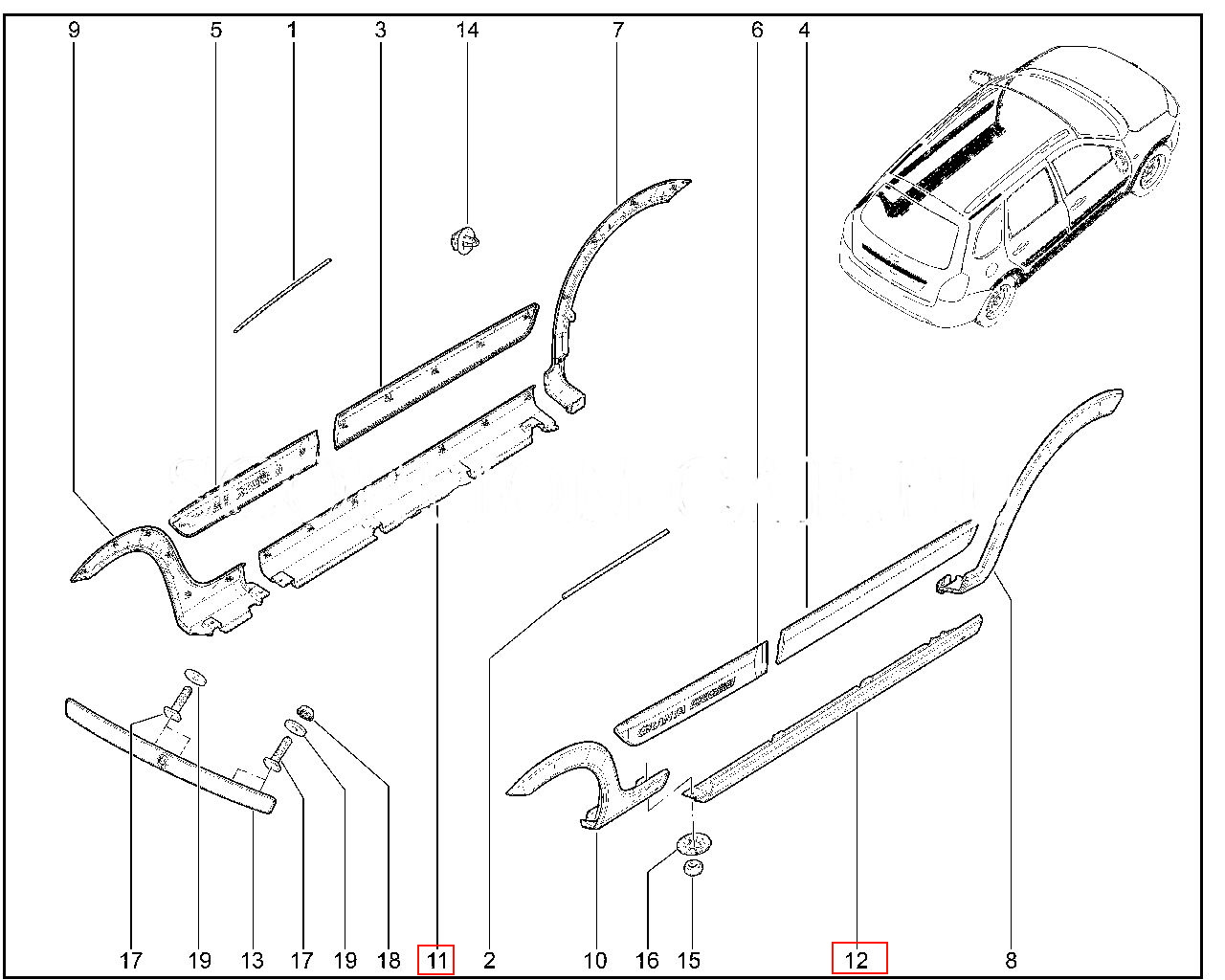 Обтекатель порога в сборе для Лада Гранта Кросс и Калина Кросс.