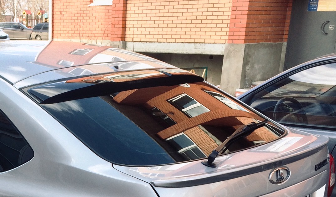 Дефлектор (козырек, спойлер) на заднее стекло для Лада Гранта в кузове Лифтбек. Цвет темно-коричневый, слегка прозрачный.