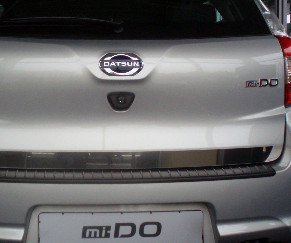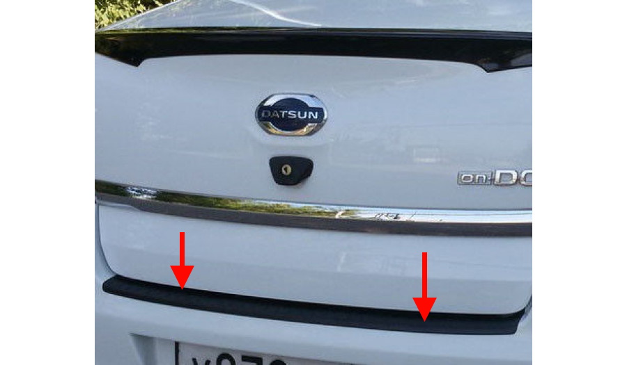 Рифленая пластиковая накладка на бампер Датсун ми-ДО / он-ДО на верхнюю часть заднего бампера. Накладка добавляет в дизайн стильный элемент, а так же служит для защиты бампера от царапин при погрузке багажа и разных грузов.