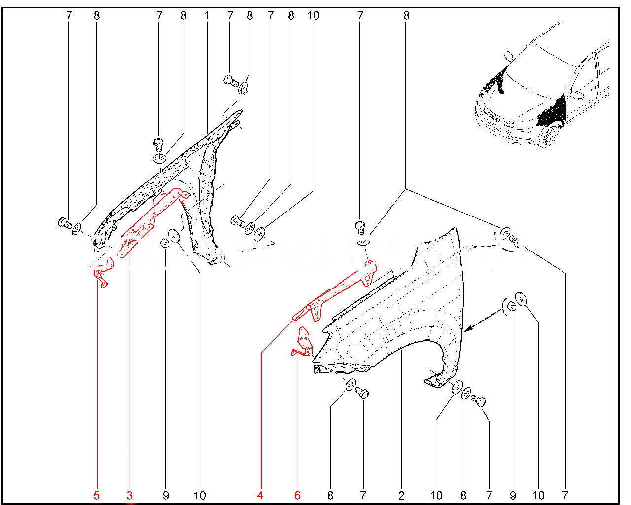 Кронштейн крепления переднего крыла для Лада Гранта ФЛ.