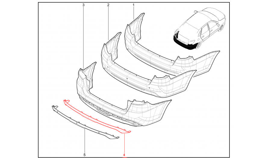 Оригинальная заводская накладка заднего бампера Лада Гранта FL (лифтбек) с 30.07.2018г для комплектаций без датчиков парковки. На схеме накладка показана под номером 4.