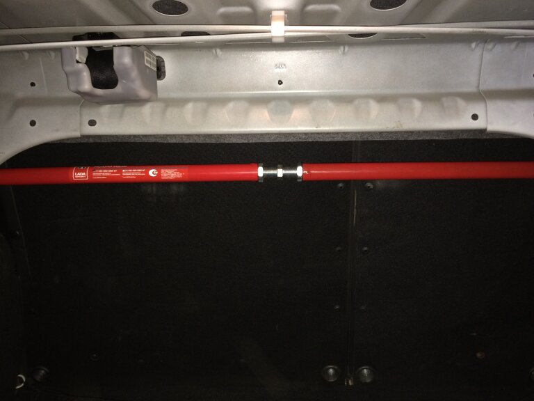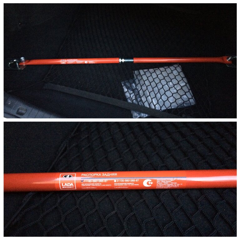 Распорка задняя LADA Sport для Лада Гранта и Калина-2. Уменьшает перемещение верхних точек крепления стоек задней подвески; увеличивает общую жесткость кузова.
