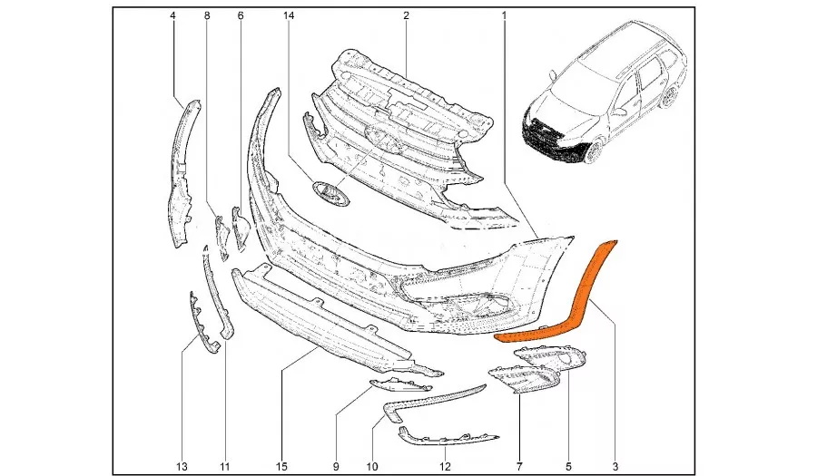 Оригинальная заводская левая накладка переднего бампера для автомобиля Лада Гранта FL Cross. Накладка подлежит замене при повреждении штатной накладки.