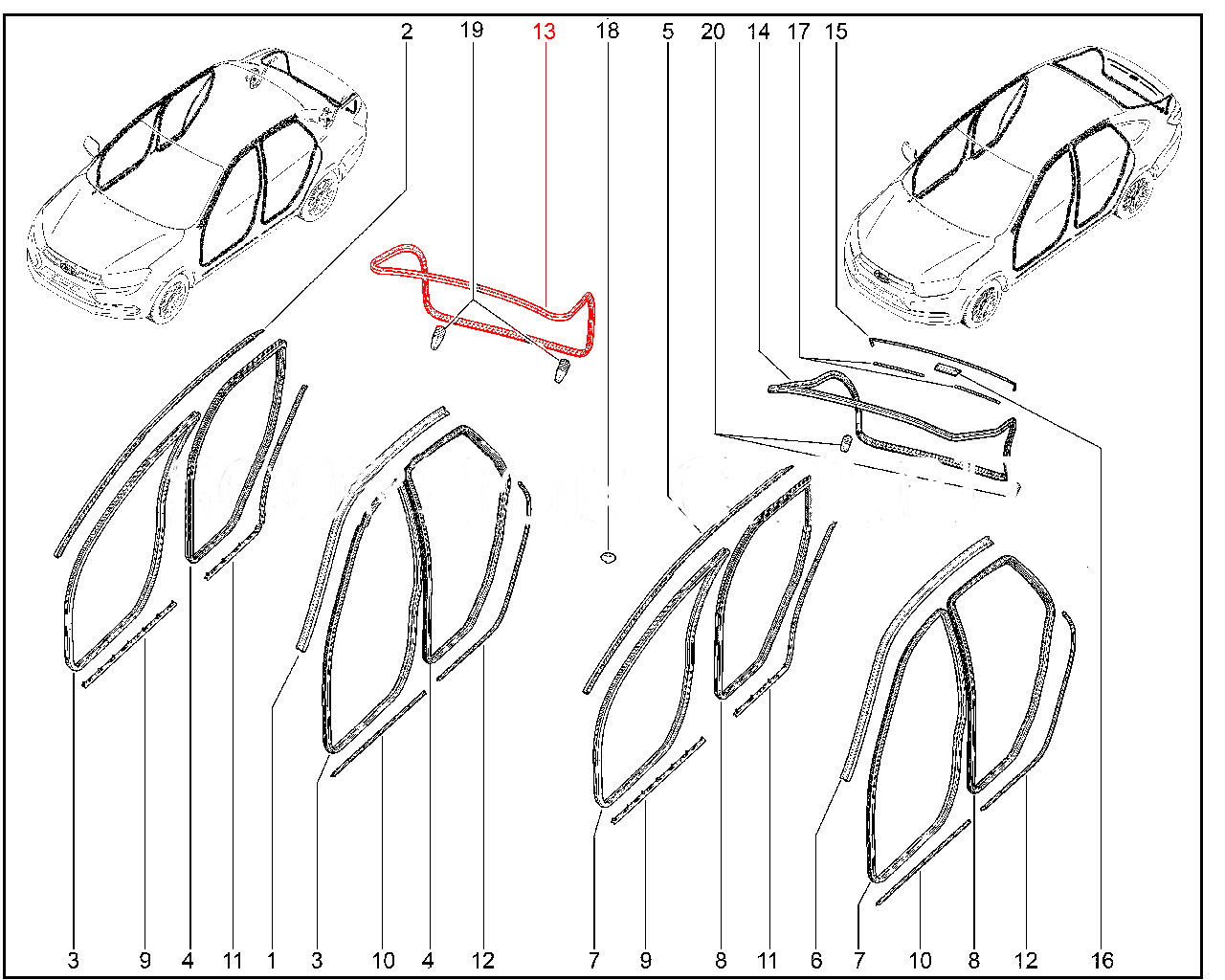Штатный уплотнитель крышки багажника в сборе для Лада Гранта седан.