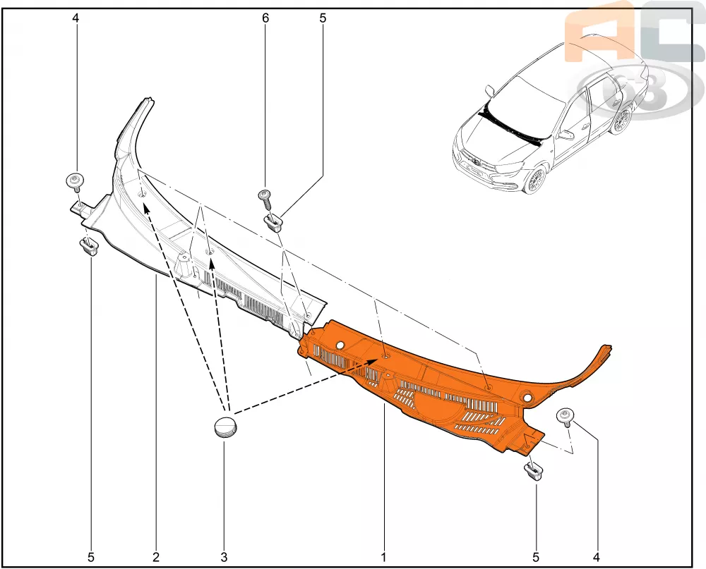 Оригинальная заводская накладка жабо для Гранты FL. Возможна установка на Гранту предыдущего поколения, Калину-2 и Датсун с доработкой.