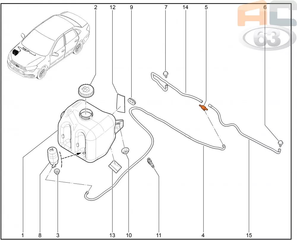 Так как на Гранте FL изменили жабо, инженеры перенесли форсунки омывателя с капота на жабо, данный тройник служит для разветвления шлангов, он имеет специальную форму чтобы закрепиться на рамке лобового стекла и не двигаться во время движения.