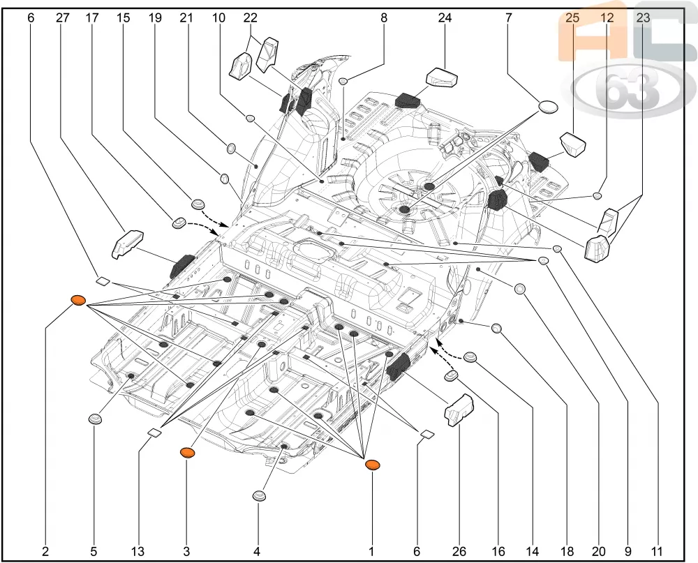 Штатная заглушка пола кузова автомобилей Лада Гранта, Лада Калина-2, Датсун, Нива Трэвел. Также применяются на автомобилях ВАЗ 2101-21099, 2113-2115.