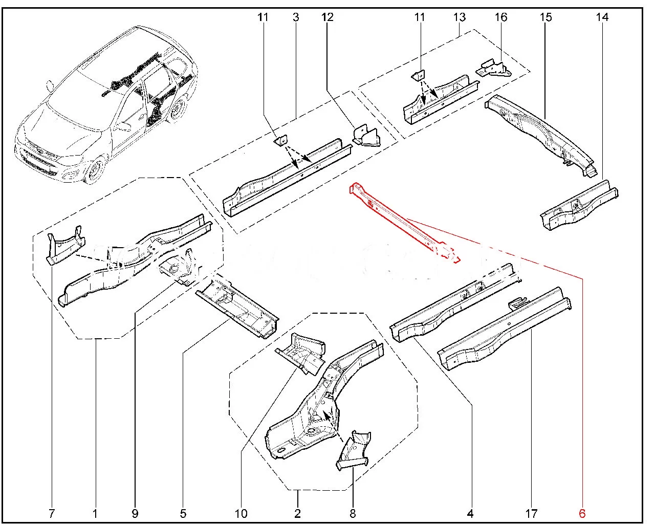 Поперечина пола задняя в сборе (катафорез) для Лада Гранта и Калина.